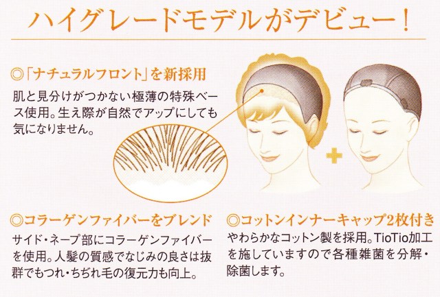 【仕様】●サイズ:普通サイズ(Mサイズ)のみ●重さ:44~49g●カラー:自然色、栗色、明るい栗色、黄栗色●毛 長:フロント/10cm トップ/9cm サイド/8cm ネープ/8cm●毛 質:化繊[形態安定]ナチュラル毛(サイド・ネープのみコラーゲンファイバーブレンド)●仕 様:総手植え