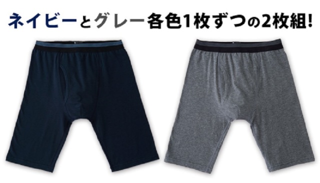- ロングボクサーパンツ ネイビーとダークグレー各色1枚ずつ2枚組 立体裁断幅広ウエストゴムでお尻をすっぽり